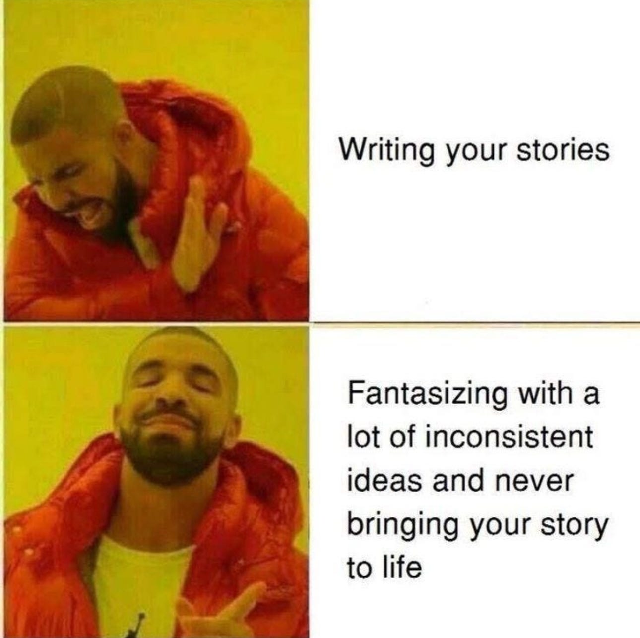 shared this meme and it speaks to so many of our creative problems.We start a story, lose the momentum in the middle of it, and end up thinking about our next story. I remember being so excited about Project Rise, Grind, Die and Repeat. I had a detailed backstory about the world and the character’s story for the first two issues. However, the road to the story’s climax was boring and I quit.